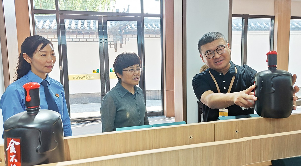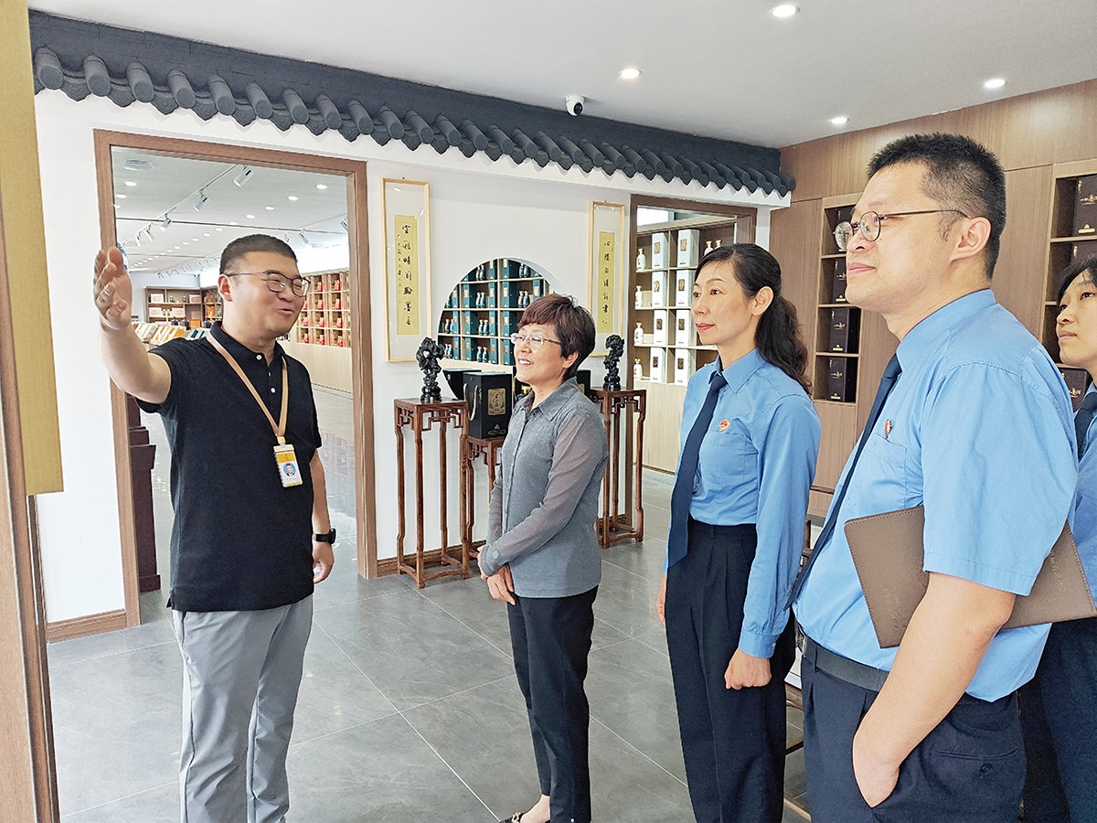 劉繼英一行在金不換集團(tuán)黨委書記、總裁支濤的陪同下,實(shí)地查看了金不換白酒儲(chǔ)藏、銷售、生產(chǎn)、文化展示基地。聽取企業(yè)生產(chǎn)經(jīng)營(yíng)情況和發(fā)展規(guī)劃介紹。劉繼英檢察長(zhǎng)對(duì)金不換多年來堅(jiān)持守法誠信經(jīng)營(yíng),創(chuàng)造良好生產(chǎn)經(jīng)營(yíng)環(huán)境,取得高質(zhì)量發(fā)展給予高度贊揚(yáng)。