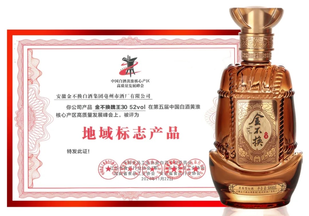 金不換酒榮獲第五屆中國(guó)白酒黃淮核心產(chǎn)區(qū)“地域標(biāo)志產(chǎn)品”